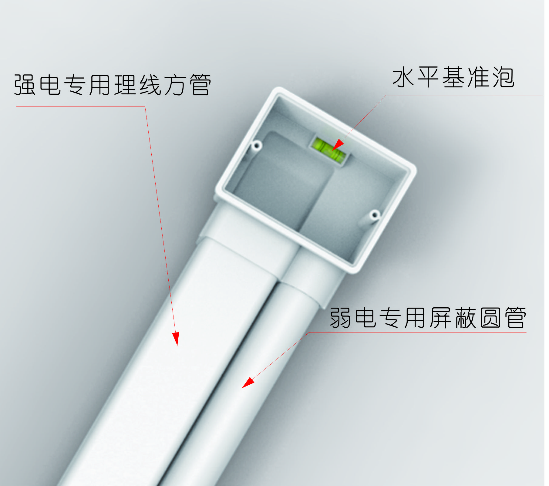 首先,為了杜絕因強(qiáng)弱電線纏繞而產(chǎn)生信號干擾問題,該產(chǎn)品使用一根強(qiáng)電專用方管與一根弱電專用屏蔽圓管,引導(dǎo)強(qiáng)弱電分開理線。