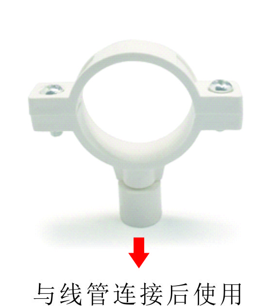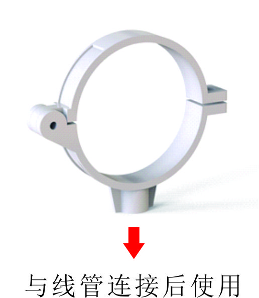 原PVC吊卡:兩邊均為螺母與螺栓連接。 與線管連接使用時,需先配套一個螺紋接口,再與線管連接。