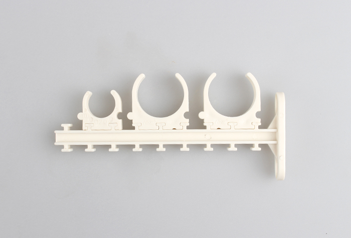 2、單個(gè)家裝組合式吊卡可固定6至8根PP-R管或電工套管。吊卡槽等距離分布于吊卡座上,使安裝好的管道也等距離分布,安裝效果更加整齊、美觀。